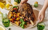 A deliciously savoury purƩe that coats the meat amplifies the flavour of this classic Easter roasting joint